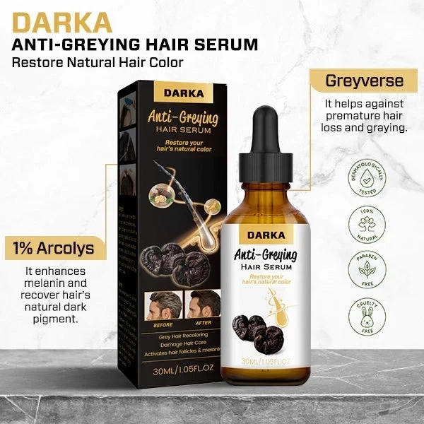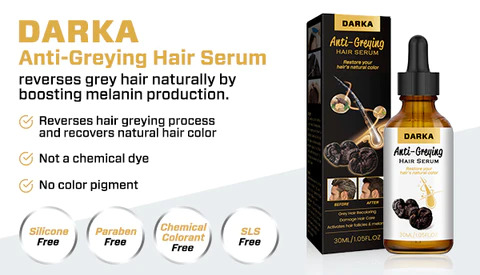 Vous ne connaissez pas ce produit phare DARKA Anti-Greying Hair Serum ? Il combine le pourcentage le plus élevé d’ Arcolys, de Greyverse et de facteurs de croissance pour une stimulation capillaire ultime pour les hommes et les femmes.
