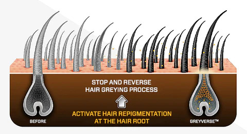 Greyverse™ contient un peptide biomimétique innovant a-MSH capable d’agir sur les différentes causes du processus de vieillissement des cheveux. Il offre une solution efficace sans précédent pour prévenir, arrêter et inverser ce signe inévitable du vieillissement . Il stimule la mélanogénèse pour augmenter la production de mélanine dans le bulbe et favoriser un meilleur transfert, ce qui conduit à terme à la repigmentation des cheveux.