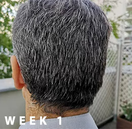 “J’utilise une fois par jour comme indiqué. J’ai remarqué des mèches de cheveux gris sur ma chemise noire, alors quand je suis allé les enlever, je ne pouvais pas croire ce que j’ai vu. À la base ou à la racine de la mèche de cheveux, je peux voir où mes cheveux ont clairement changé de couleur à la racine . J’ai hâte de voir le résultat final maintenant !”